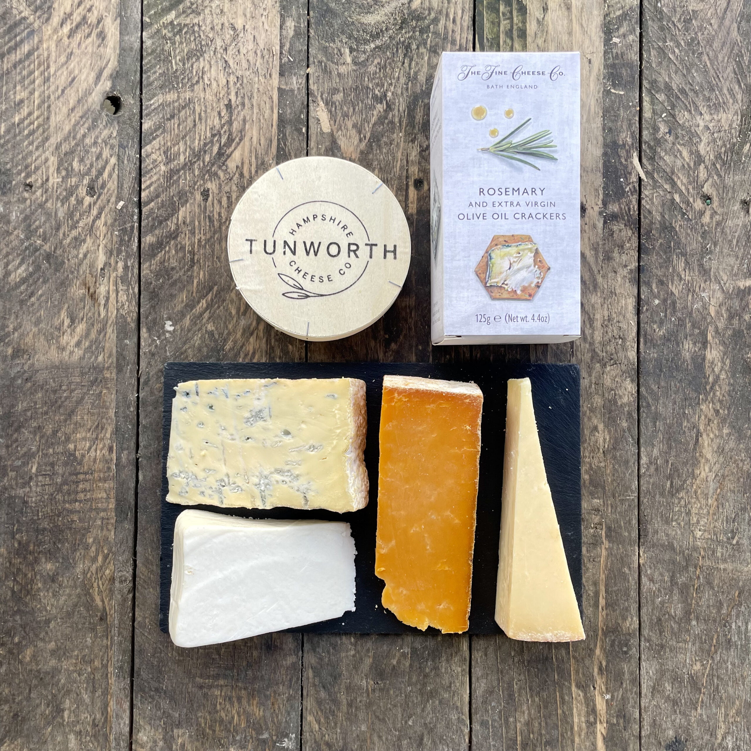 Includes a box of The Fine Cheese Co. Salt and Olive Oil Crackers (GF option available).